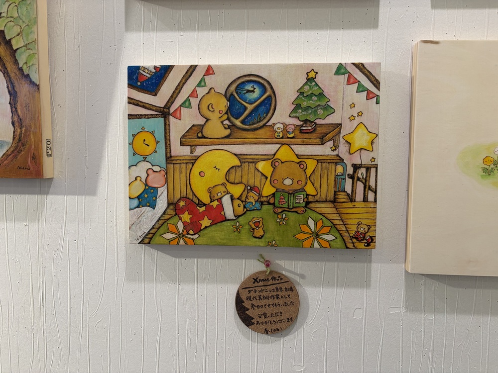 八王子にお住まいですが、普段は作品をたくさんの方に知ってもらうため、青森・大阪・名古屋など、日本各地を巡っているのだそう。八王子での展示はカフェでの個展に続いて2度目とのことでした。