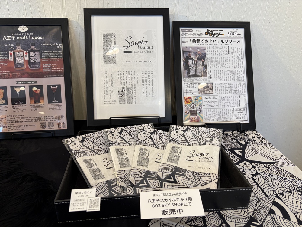 こちらの手ぬぐいは「桑都てぬぐい」といい、八王子の伝統「桑都」をテーマに職人が手染めで制作されています。