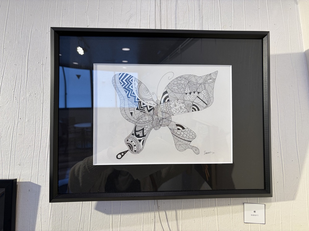 アート展で展示されていた蝶をモチーフにした絵も、岡山の会社がきっかけとなり、兵庫県芦屋のカフェから依頼が来たことが始まりだったそうです。