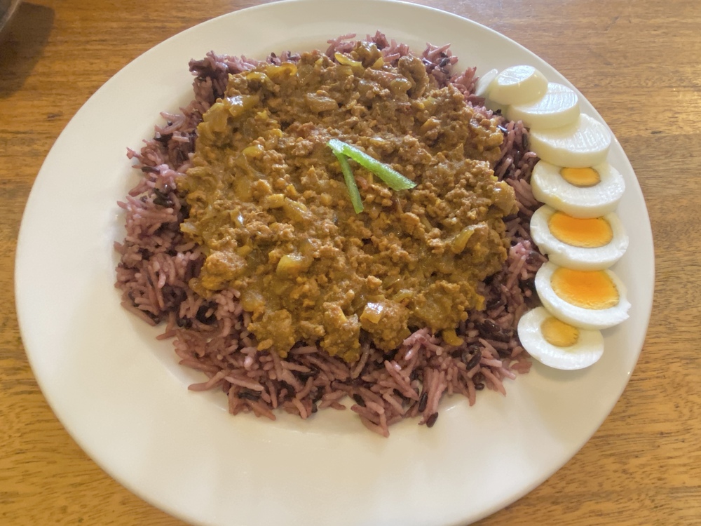 キーマカレーに黒米バスマティライス