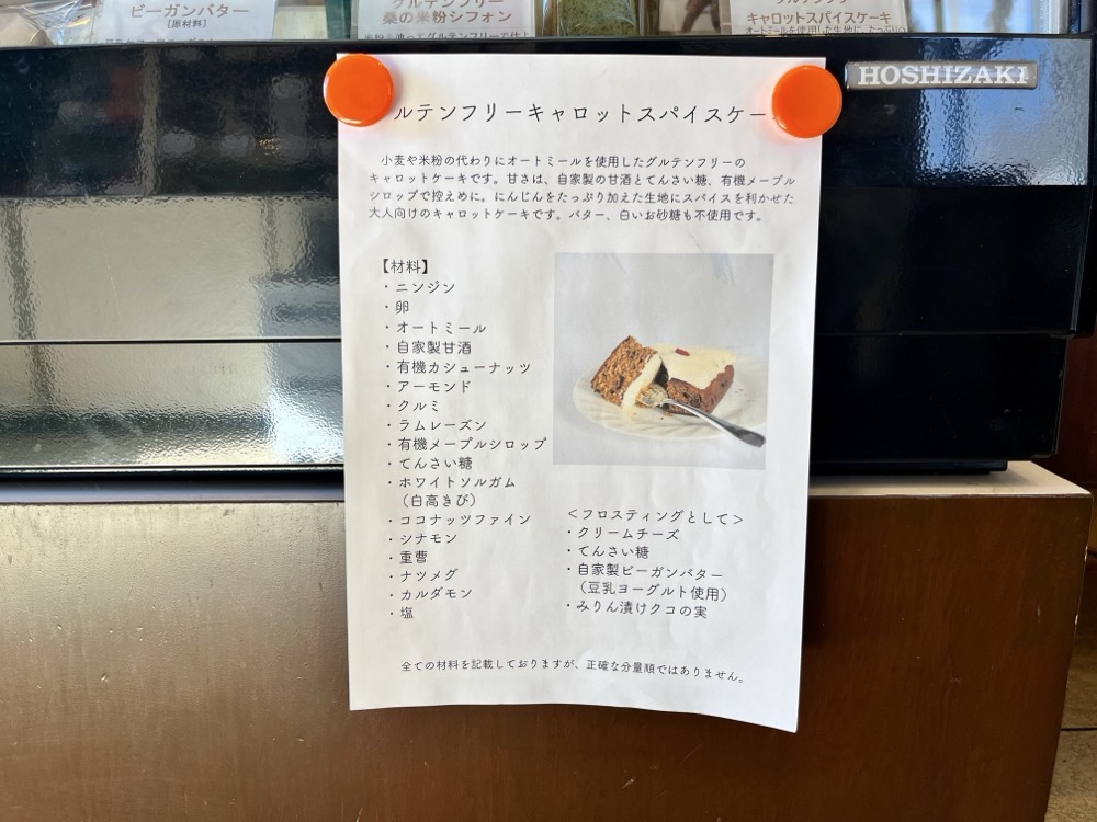 グルテンフリーのケーキや焼き菓子を販売しており、ケーキの詳細も紹介されていることがあるようです。