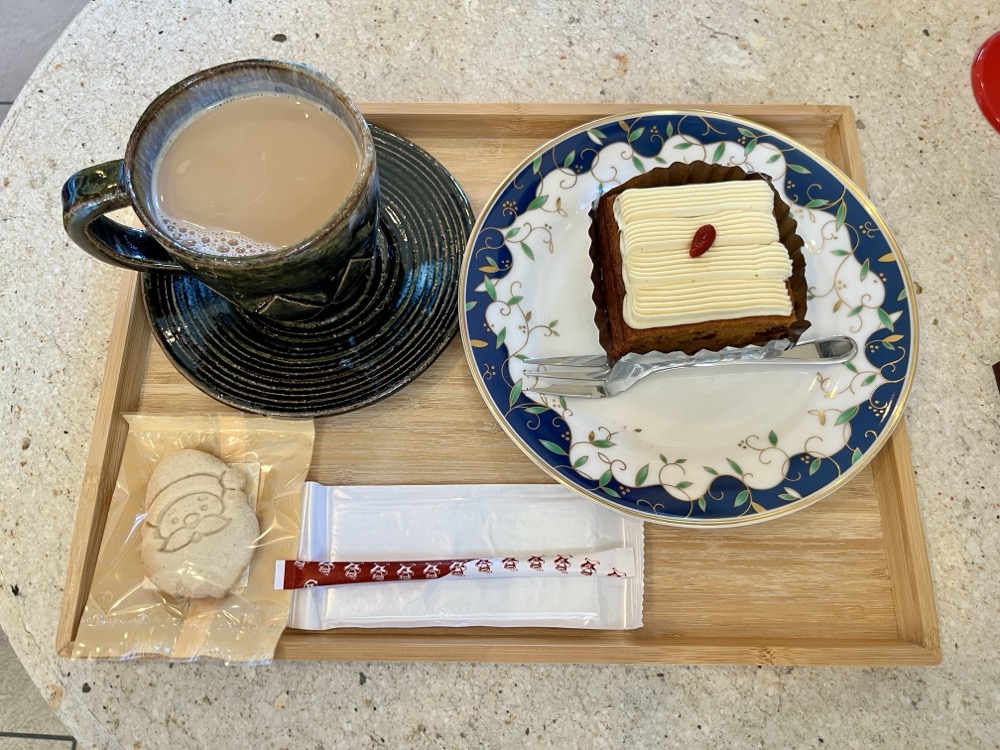 私がケーキをいただいている最中にも、おひとり常連のお客さんがいらしていましたが、「これね!」と店員さんにお土産(差し入れ)を持ってきたようで、渡したら「今日はこれだけね!また来るから!」と、アットホームなやりとりも。それみてほっこりしました。