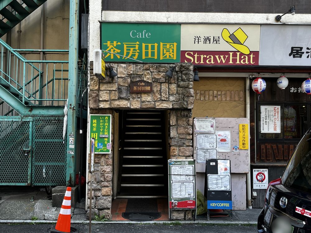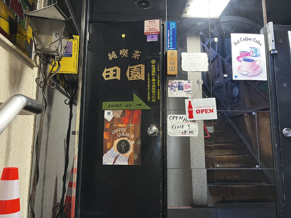 「純喫茶 田園」は八王子駅北口を1Fからから出て、くまざわ書店の隣から路地裏のビルに向かったところにあります。