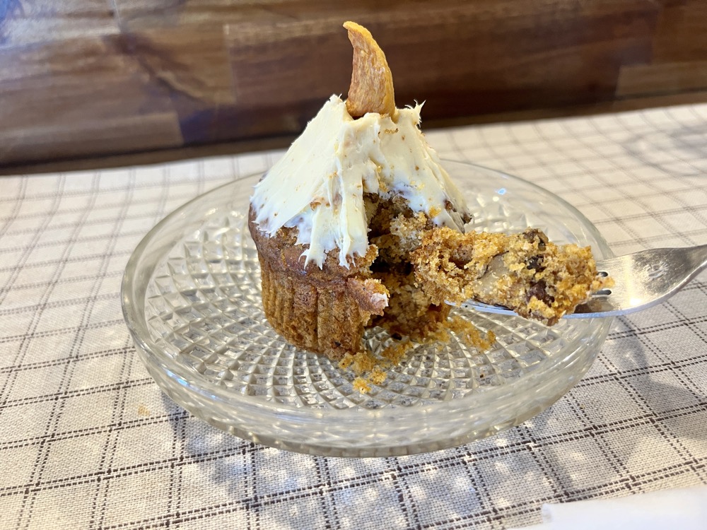 キャロットケーキは中にクルミなども入っています。ミニサイズのケーキでしたが食べ応えがありました!優しい甘さでペロッと完食です。