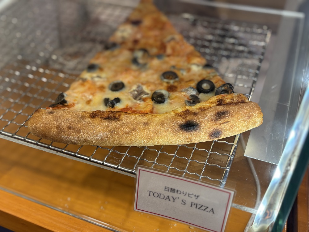 一切れでも、大人の顔が隠れてしまうほどのボリューム感。この非日常的な大きさが、食べる前からワクワクした気分にさせてくれますね!スライスピザだけではなく、注文が入ってから焼き上げるホールピザも人気だそう。ホームパーティーの手土産にもよろこばれそうですね!