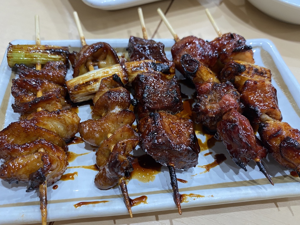 • 塩:豚レバー、ねぎま、とり皮、カシラ、タン