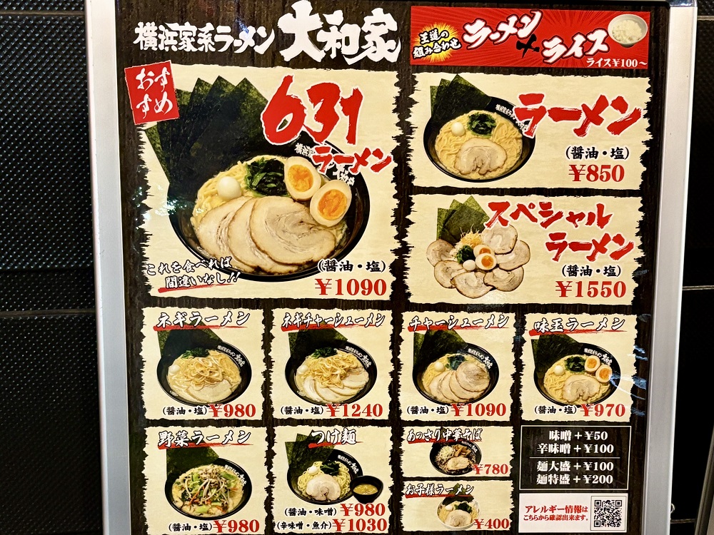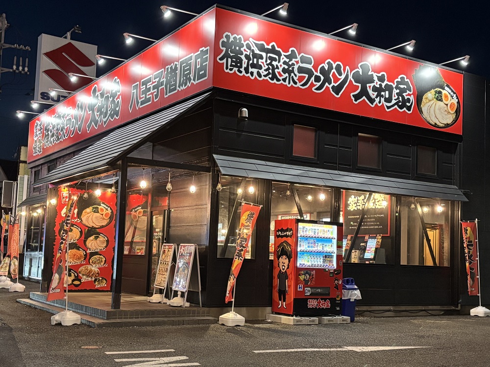 秋川街道沿いでひと際目立つ、家系カラーが特徴の大和家