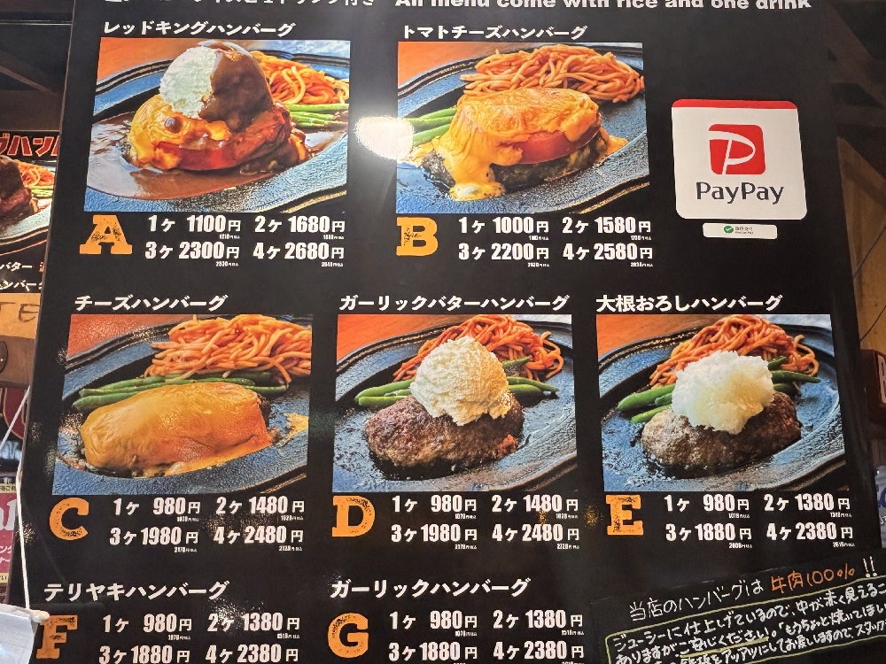 今回は、看板商品の「レッドキングハンバーグ」を注文しました。