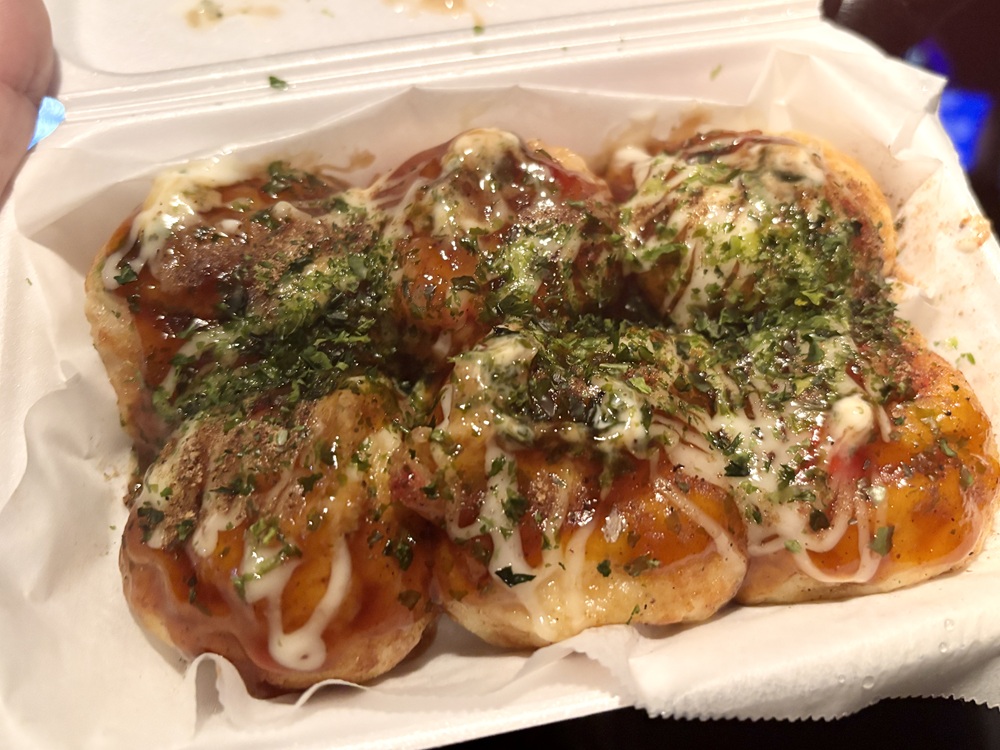 まずは、定番かつ一番人気の6個入たこ焼きを注文。出来立てアツアツの提供なので、パック越しに伝わる温度が心地いいです!