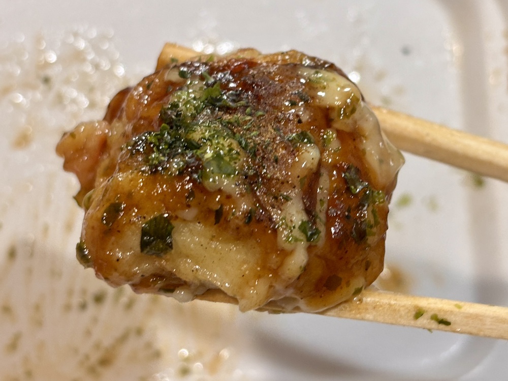 柔らかな生地がおおぶりのタコをとろりと包んでおり、ソースとマヨネーズがそれぞれの味を完璧にまとめ上げています。ハフハフと息を吹きかけながら頬張る瞬間は、まさに至福のひととき。とにかく、フワトロで最高級のたこ焼きです!
