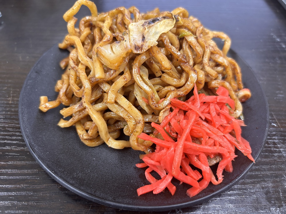 麺はしっかりと太く、噛むともっちりとした食感が楽しめます。キャベツや豚肉など具材はシンプルで、懐かしい王道の味わいです。