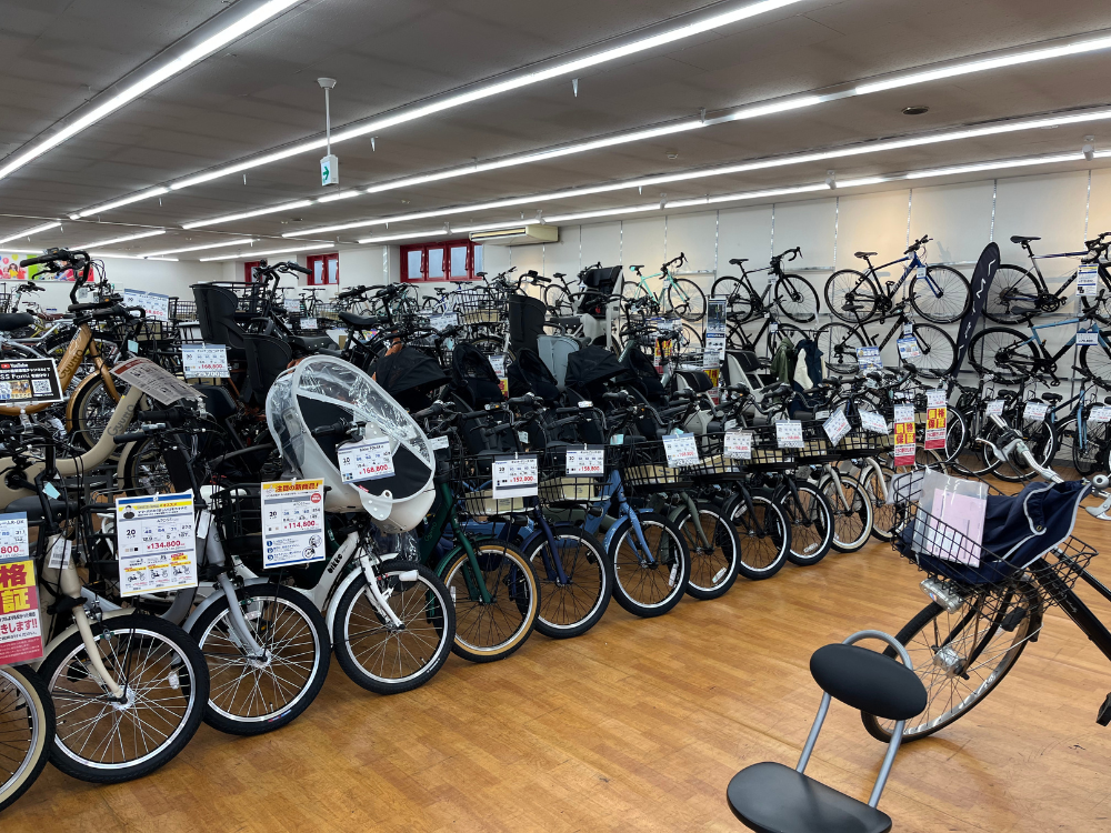 店内は明るくて広く、奥までずらっと自転車が並んでいます。