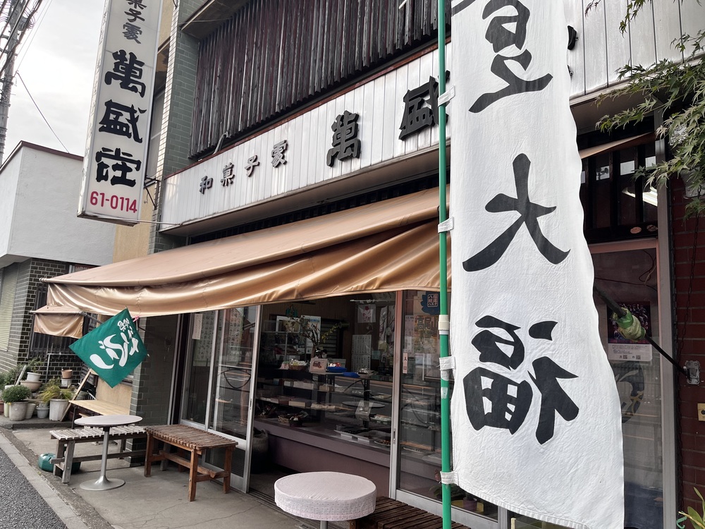 萬盛堂は、高尾駅から徒歩約5分、甲州街道沿いで営業している和菓子店です。