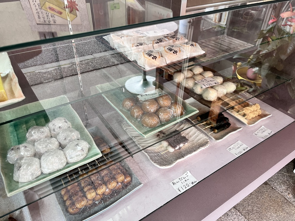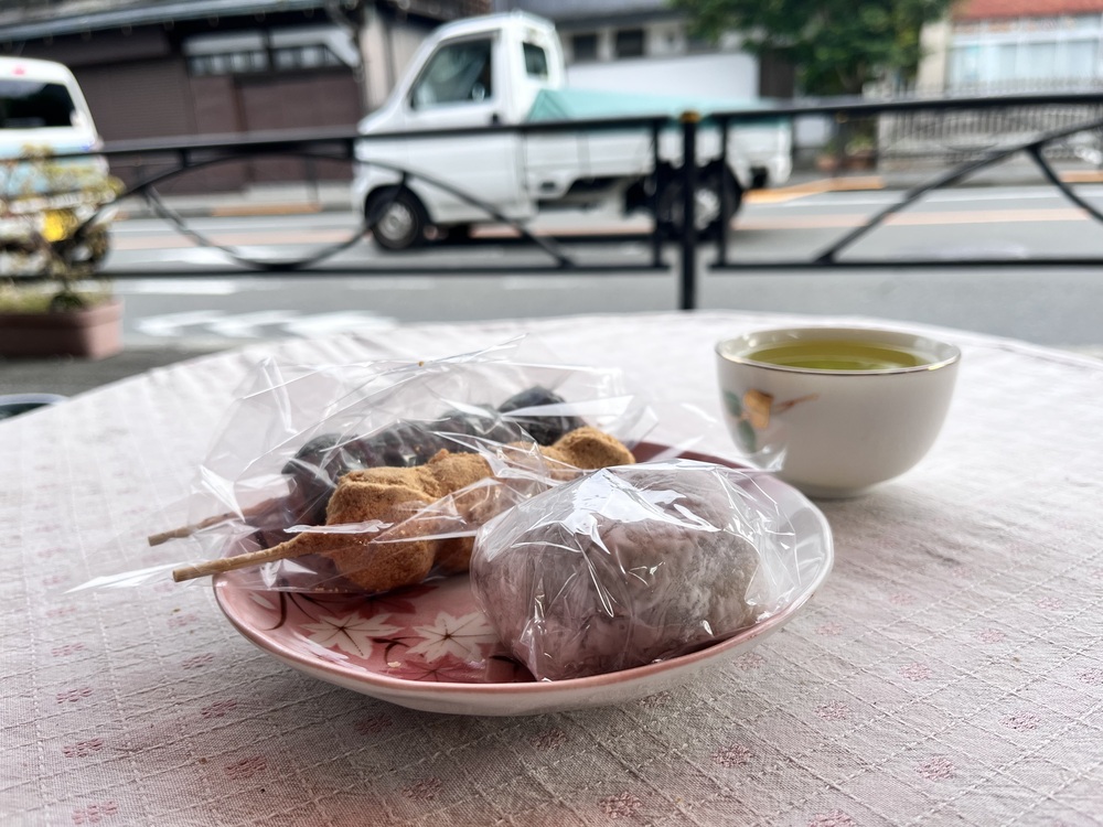 今回はお手頃な値段と食べ歩きのしやすさで人気の、お団子と豆大福をいただくことにしました。