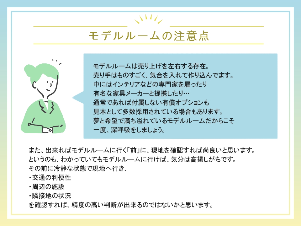 だからこそ、慎重に…中古マンション以上に細かく見る必要があります。