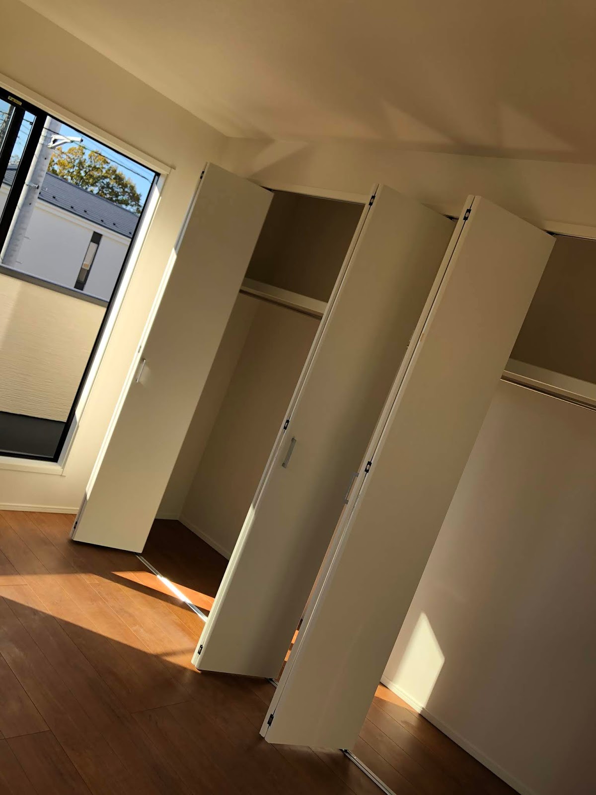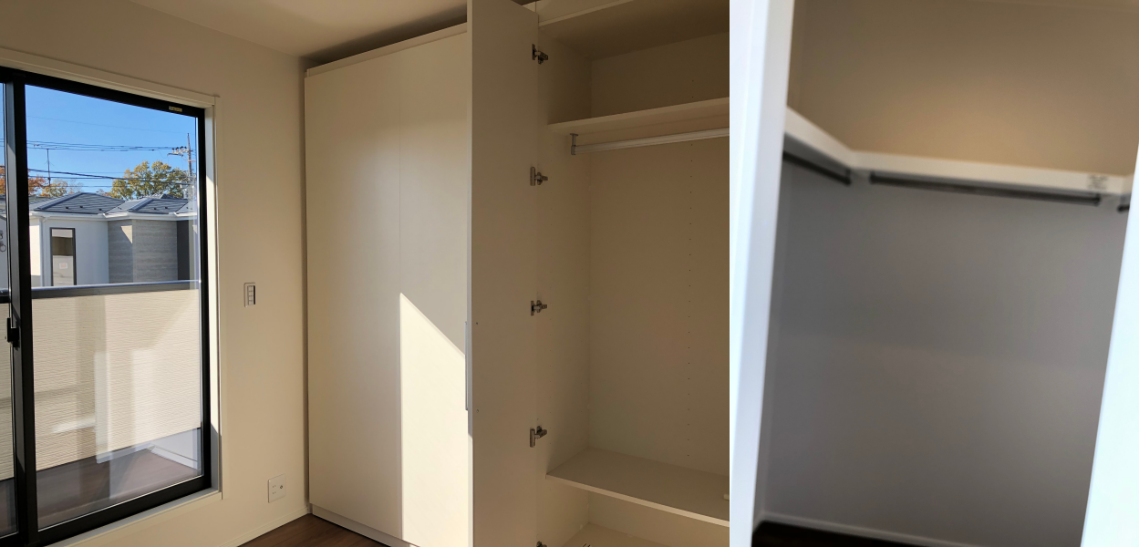 SNS担当:物干し竿が設置できる部屋に大きな収納棚があるの、かなりポイント高いです。