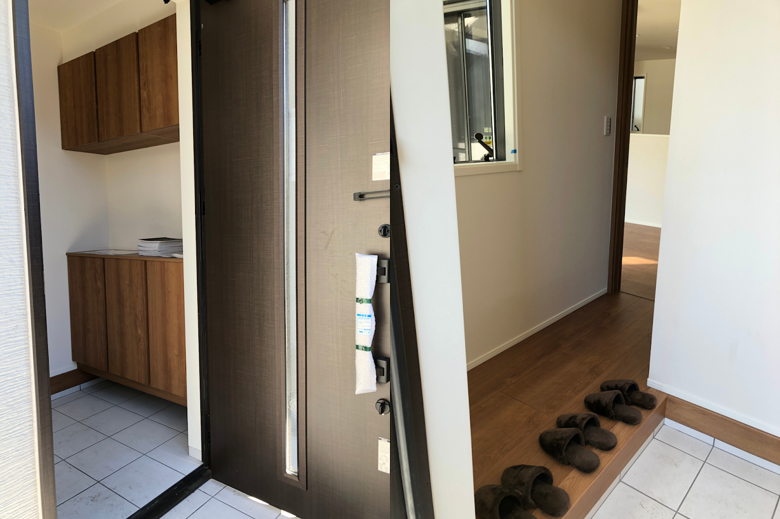 吉本社員:構造上、少し玄関は狭いですが、小窓から光が差し込むので