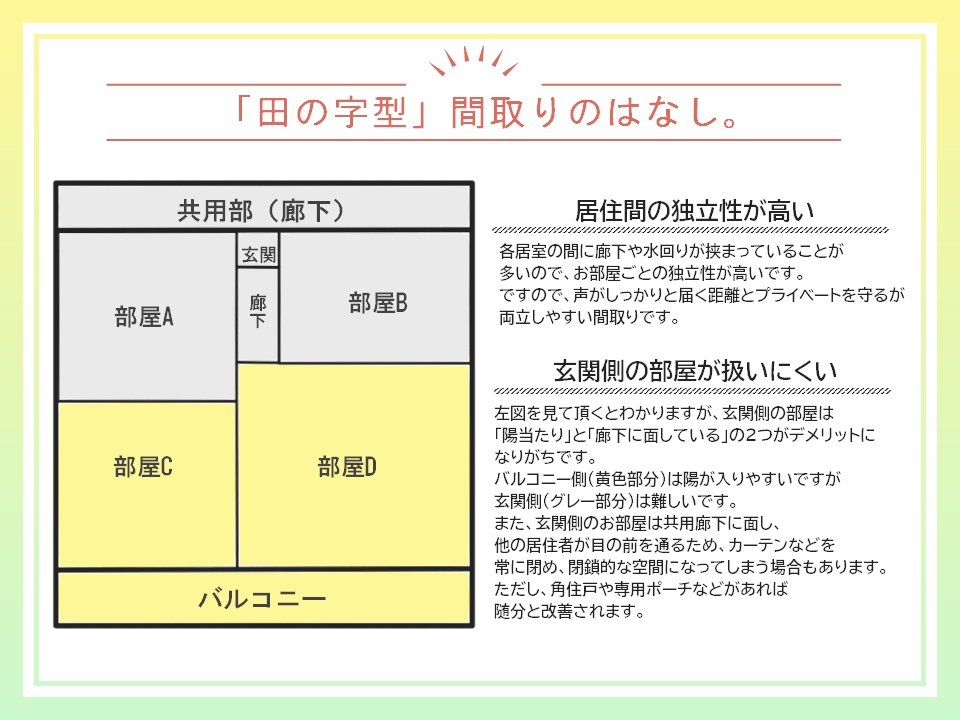 マンションの間取というと、「田の字型」間取りという言葉をご存知ですか?